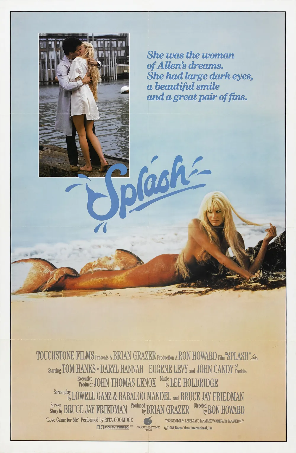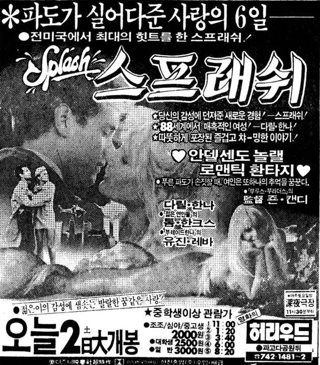 *"스플래시"*는 1984년 론 하워드가 감독한 로맨틱 판타지 코미디 영화로, 톰 행크스, 다릴 한나, 유진 레비, 존 캔디가 출연합니다.